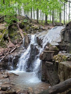 Красивий водоспад посеред букового лісу.