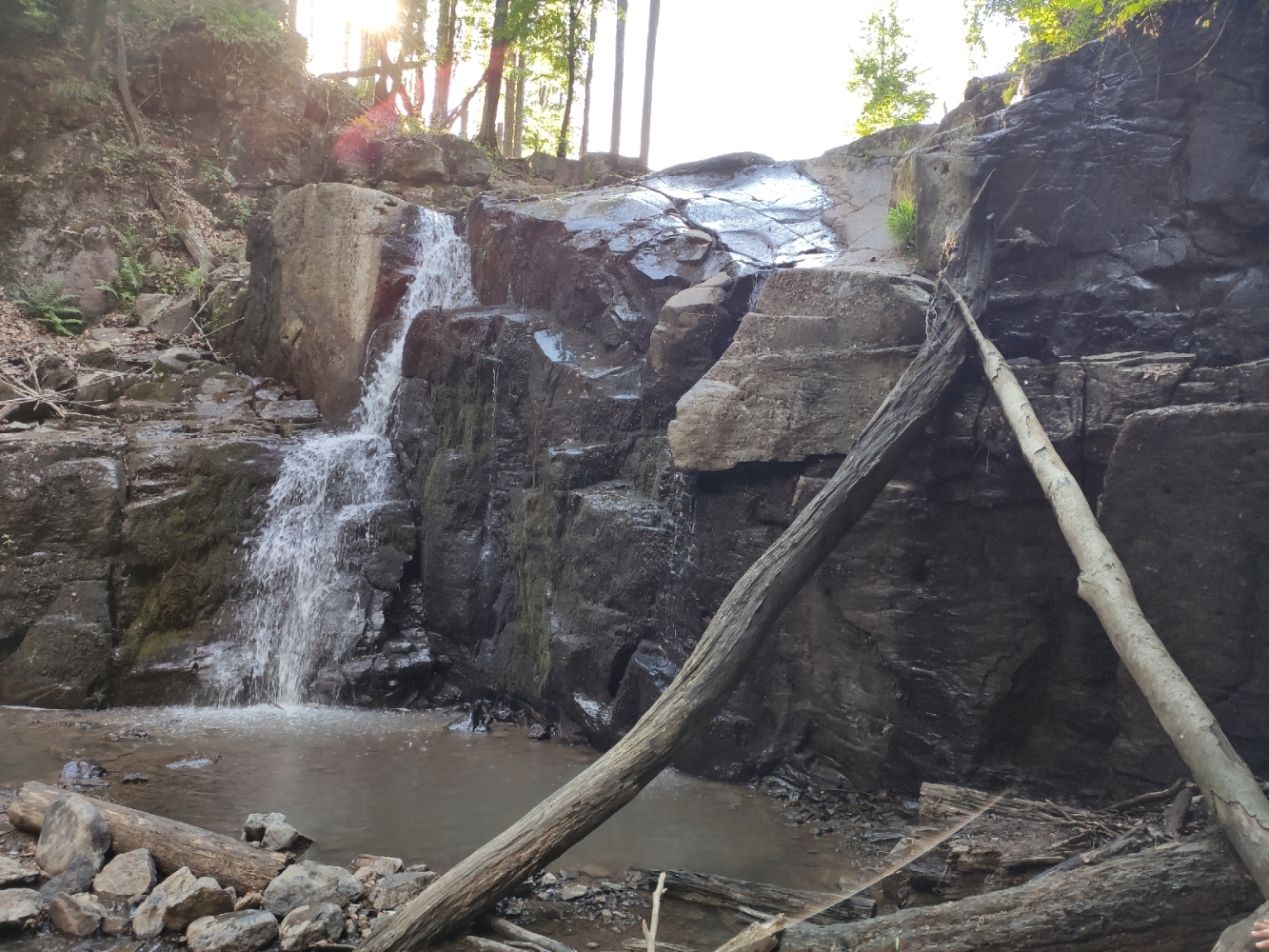 Вигляд на водоспад зі стежки.